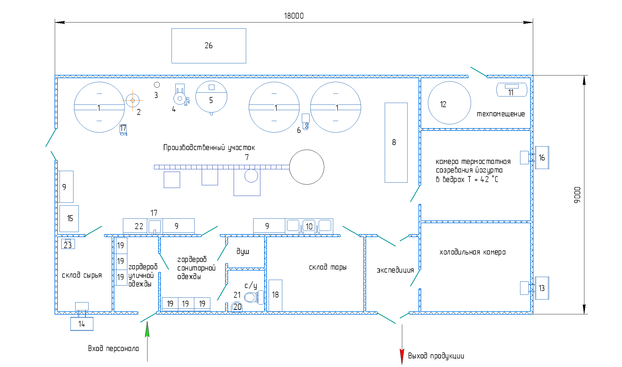 укомплектован всем необходимым оборудованием и коммуникациями для полного технологического цикла переработки молока. Цех соответствует санитарно-гигиеническим требованиям Роспотребнадзора, техническому регламенту Таможенного союза «О безопасности молока и молочной продукции» (ТР ТС 033/2013), нормам пожарной и электробезопасности, правилам безопасности труда. Санитарная обработка оборудования и помещения цеха осуществляется в соответствии с инструкциями Всероссийского института молочной индустрии. Оборудование цеха и молокопроводы изготовлены из высококачественной пищевой нержавеющей стали.