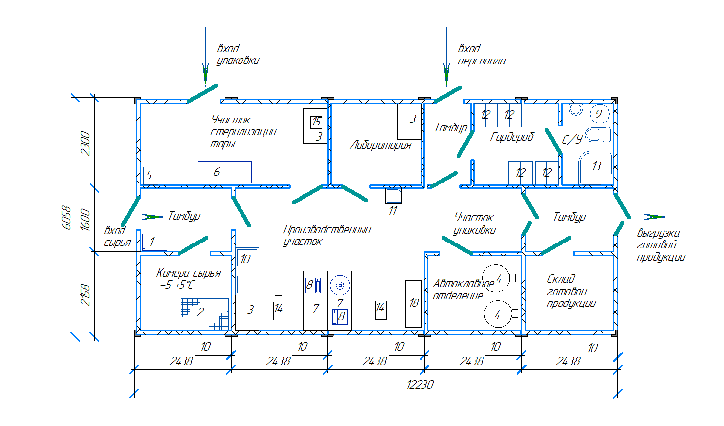 представляет собой здание на основе металлокаркаса с использованием сэндвич панелей в качестве ограждающих конструкций. Цех укомплектован всем необходимым оборудованием и коммуникациями для полного технологического цикла переработки рыбы. Цех соответствует санитарно-гигиеническим требованиям Роспотребнадзора, нормам пожаро и электро-безопастности, правилам безопасности труда и полностью отвечают требованиям Технического регламента Таможенного союза ТР ТС 021/2011 «О безопасности пищевой продукции».