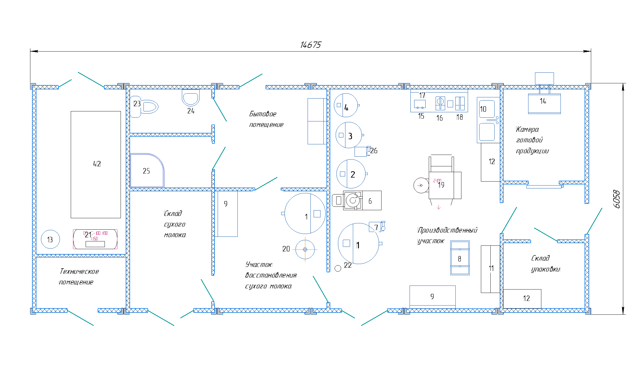 Молочный цех М-1000.3.2 (Восстановление, полиэтилен, пэт, стаканчики, ГЛВ в модуле, склад упаковки, склад сухого молока)