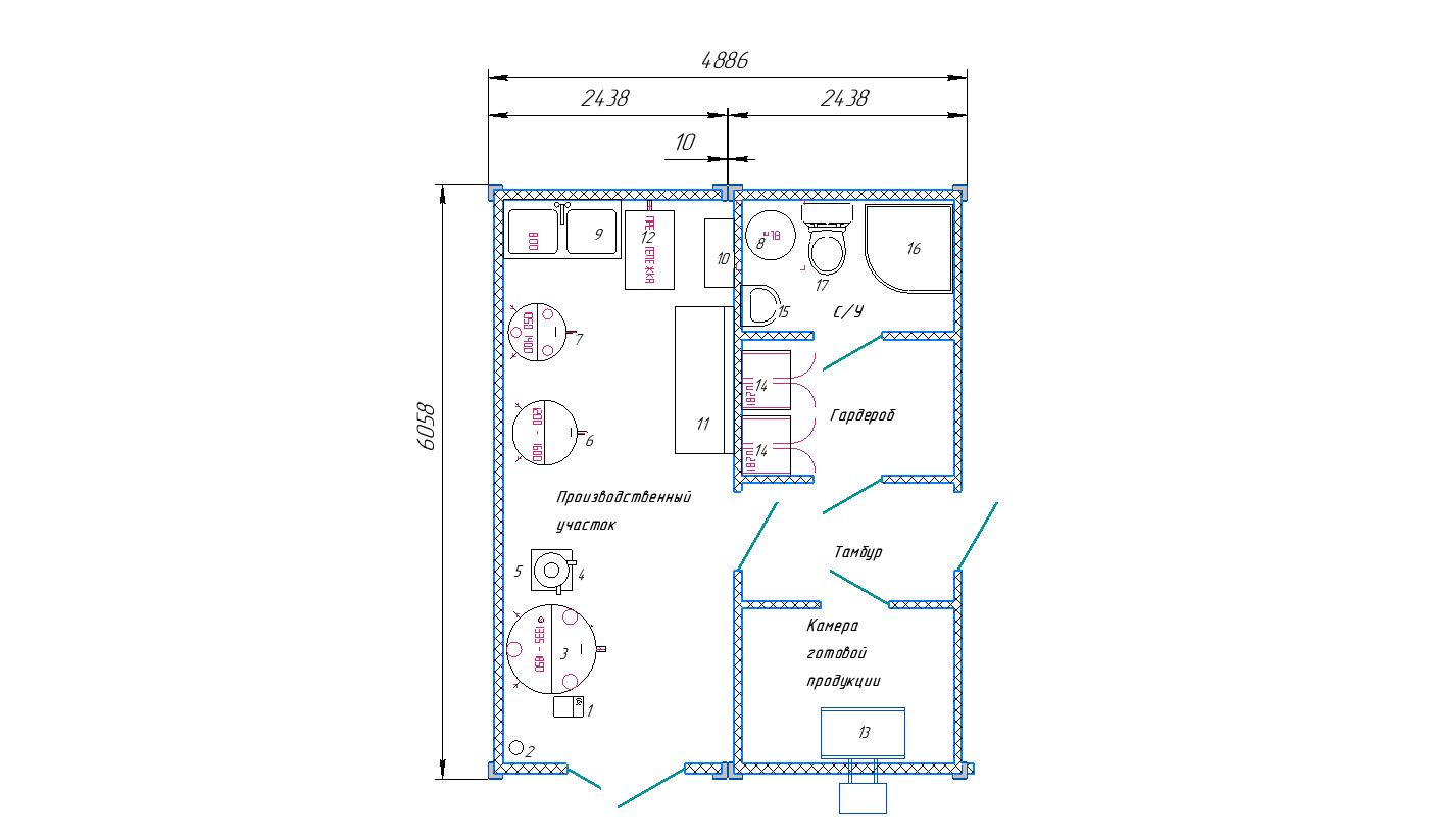 Молочный цех М-500.3.1 (Ручной розлив, без общей кровли, без ГЛВ, холодильная камера, бытовые, творог, кефир, сметана, молоко, сыр мягкий, 500 л)