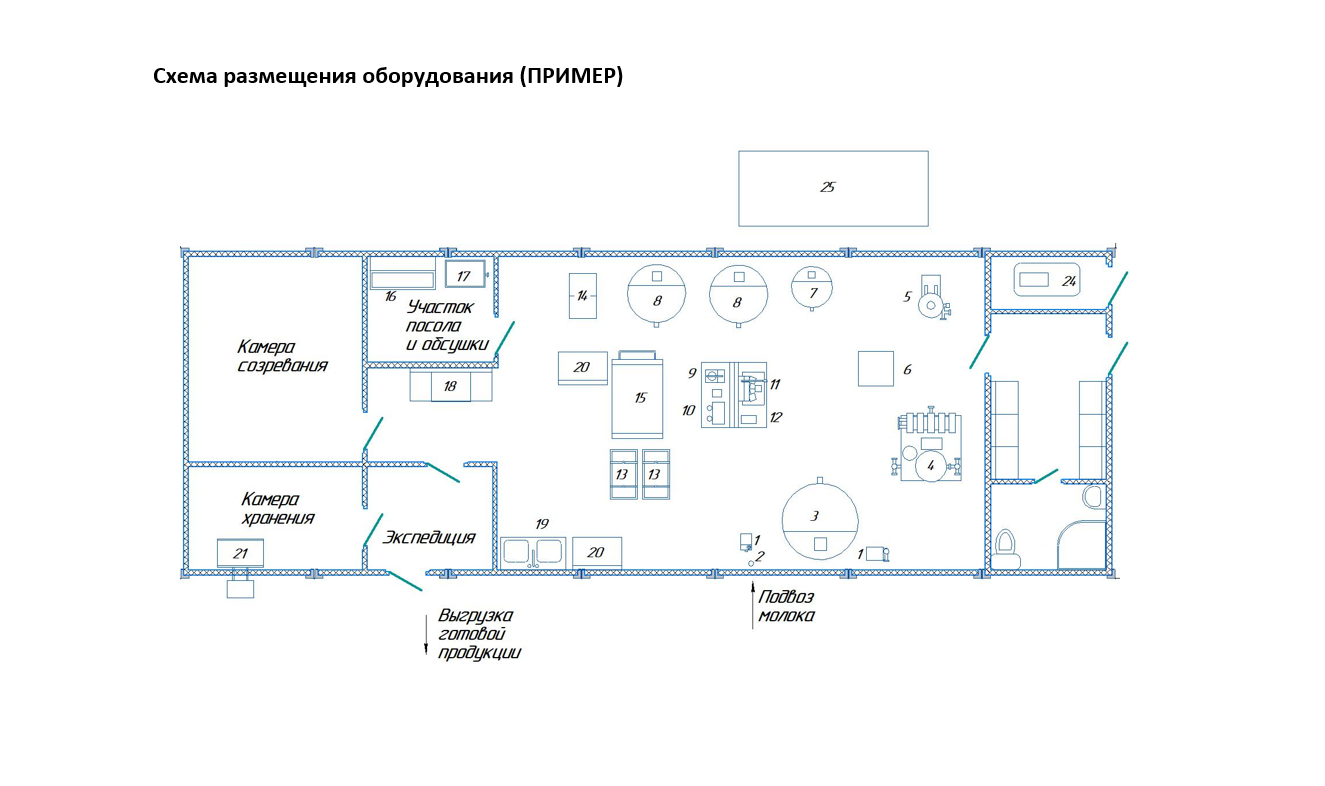 укомплектован всем необходимым оборудованием и коммуникациями для полного технологического цикла переработки молока. Цех соответствует санитарно-гигиеническим требованиям Роспотребнадзора, техническому регламенту Таможенного союза «О безопасности молока и молочной продукции» (ТР ТС 033/2013), нормам пожарной и электробезопасности, правилам безопасности труда. Санитарная обработка оборудования и помещения цеха осуществляется в соответствии с инструкциями Всероссийского института молочной индустрии. Оборудование цеха и молокопроводы изготовлены из высококачественной пищевой нержавеющей стали.