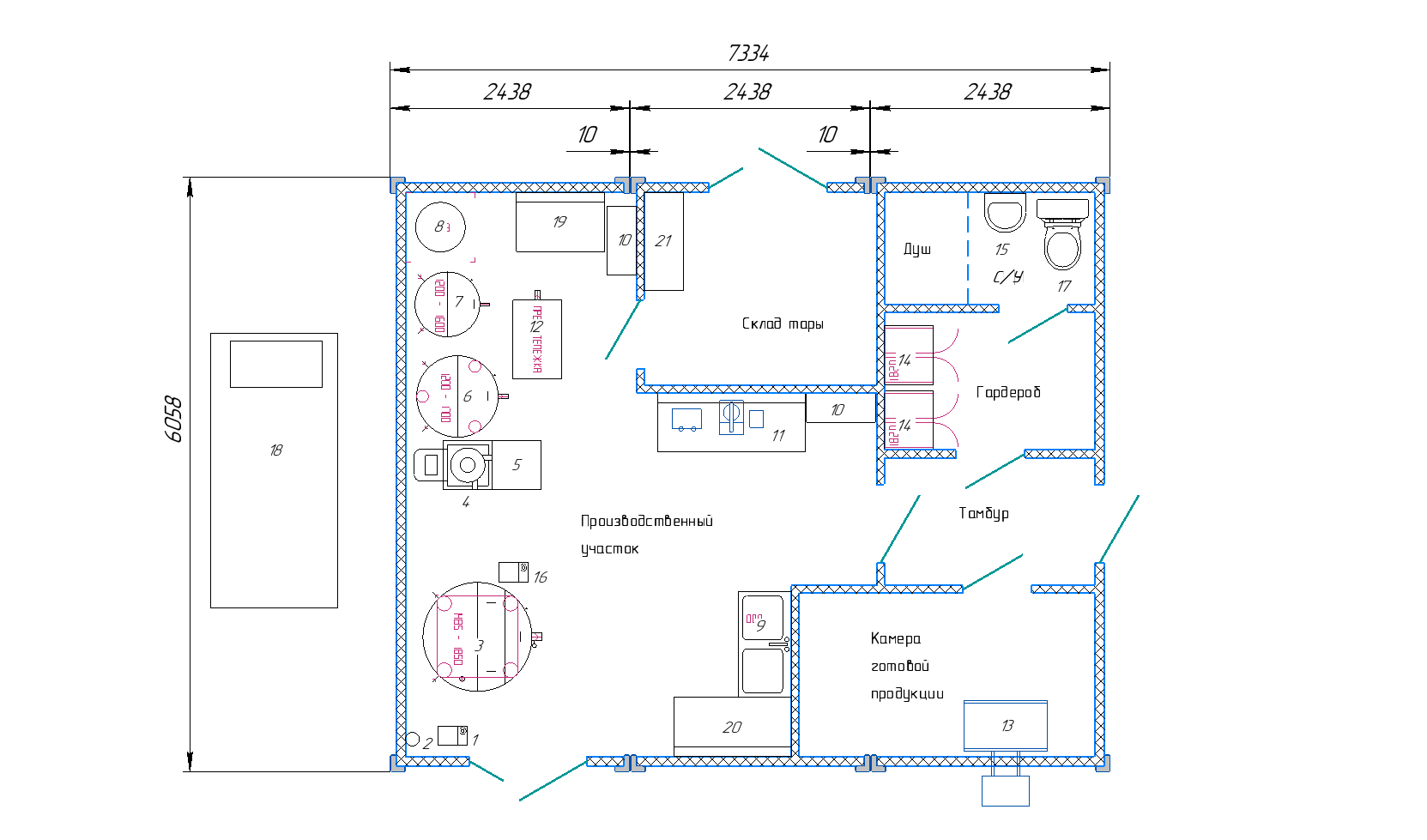 Молочный цех К-1000.3.3 (Бюджет, ПЭТ, стаканчики, с общей кровлей, ГЛВ, склад тары, холодильная камера, бытовые, творог, кефир, сметана, молоко, масло, сыр мягкий)