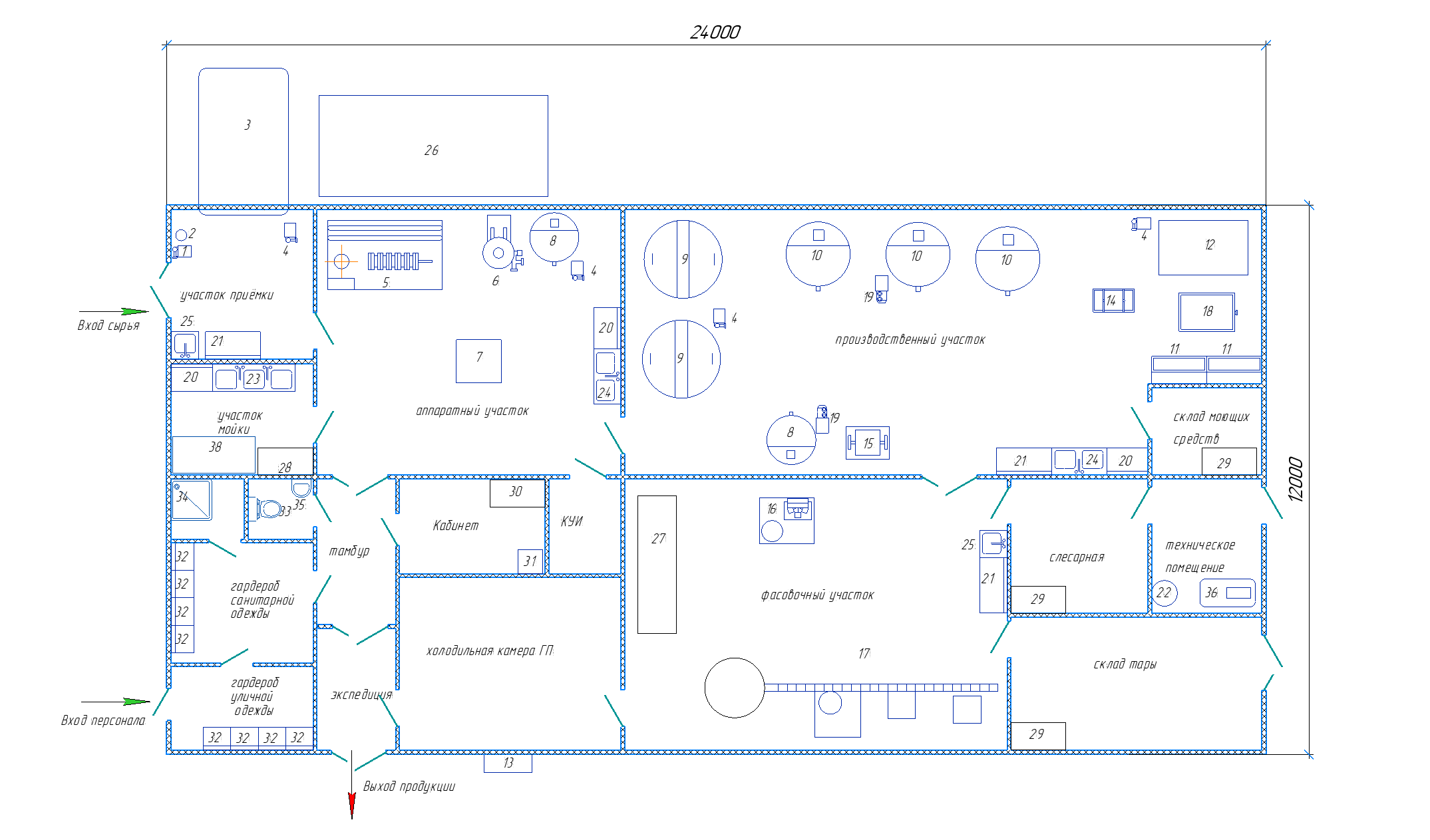 Молочный цех К-10000.3.1 (ПЭТ, БВЗ, стаканчики, ГЛВ, склад тары, кабинет, холод., бытовые, творог, кефир, сметана, молоко, масло, сыр мягкий)