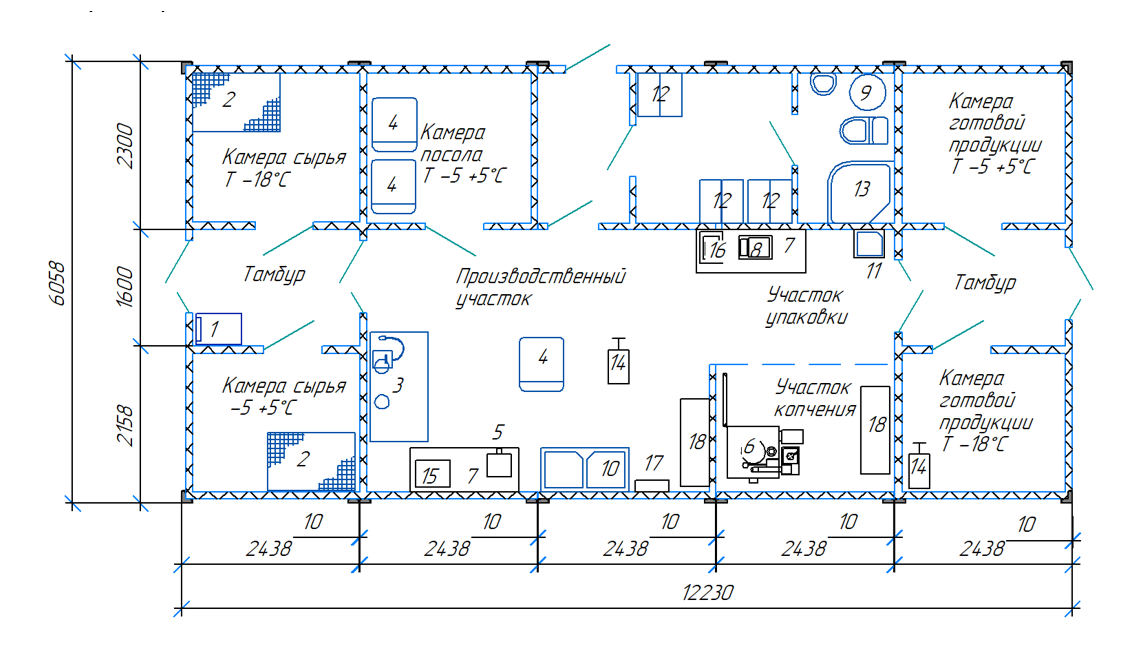Рыбный цех РЦ-200.2 (в модулях, копч. сол. стейки, заморозка, бытовые)