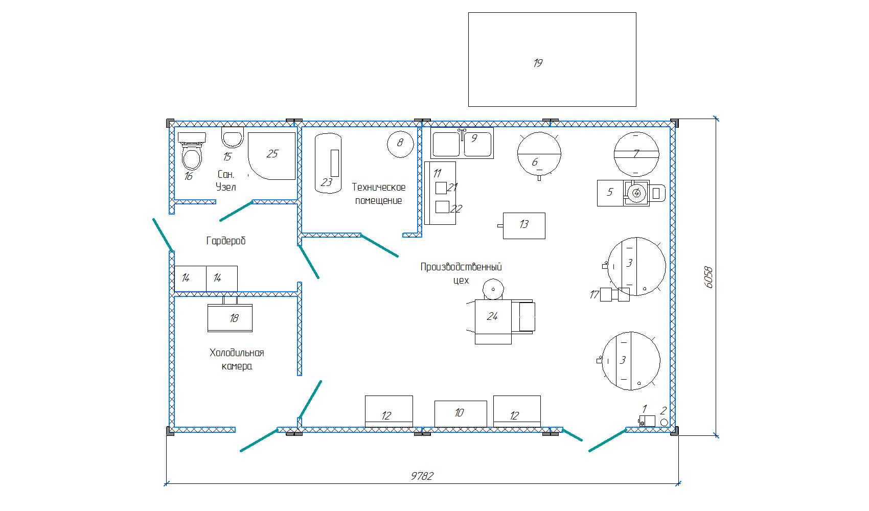 укомплектован всем необходимым оборудованием и коммуникациями для полного технологического цикла переработки молока. Цех соответствует санитарно-гигиеническим требованиям Роспотребнадзора, техническому регламенту Таможенного союза «О безопасности молока и молочной продукции» (ТР ТС 033/2013), нормам пожарной и электробезопасности, правилам безопасности труда.