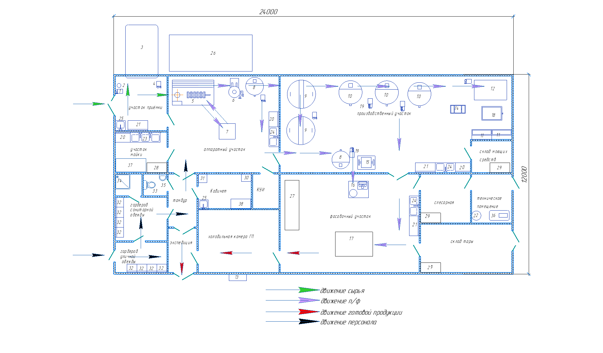 Молочный цех К-10000.1 (Пюрпак, БВЗ, стаканчики, ГЛВ, склад тары, кабинет, холод., бытовые, творог, кефир, сметана, молоко, масло, сыр мягкий)
