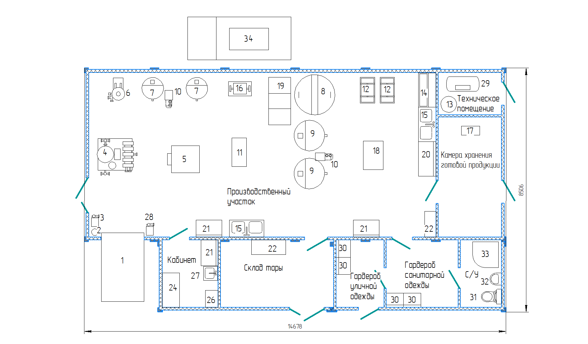 укомплектован всем необходимым оборудованием и коммуникациями для полного технологического цикла переработки молока. Цех соответствует санитарно-гигиеническим требованиям Роспотребнадзора, техническому регламенту Таможенного союза «О безопасности молока и молочной продукции» (ТР ТС 033/2013), нормам пожарной и электробезопасности, правилам безопасности труда.