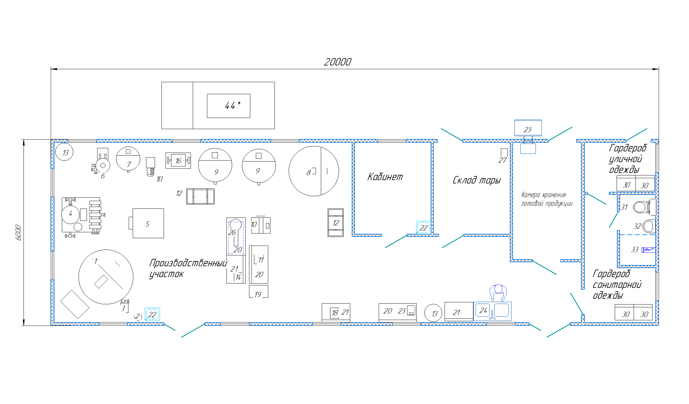 Молочный цех М-5000.5 (добавлена автоматизация, БВЗ, Бюджетный, ПЭТ, молоко, творог, кефир, сметана, масло, сыр мягкий, ГЛВ, склад тары, кабинет, холодильная камера, бытовые)