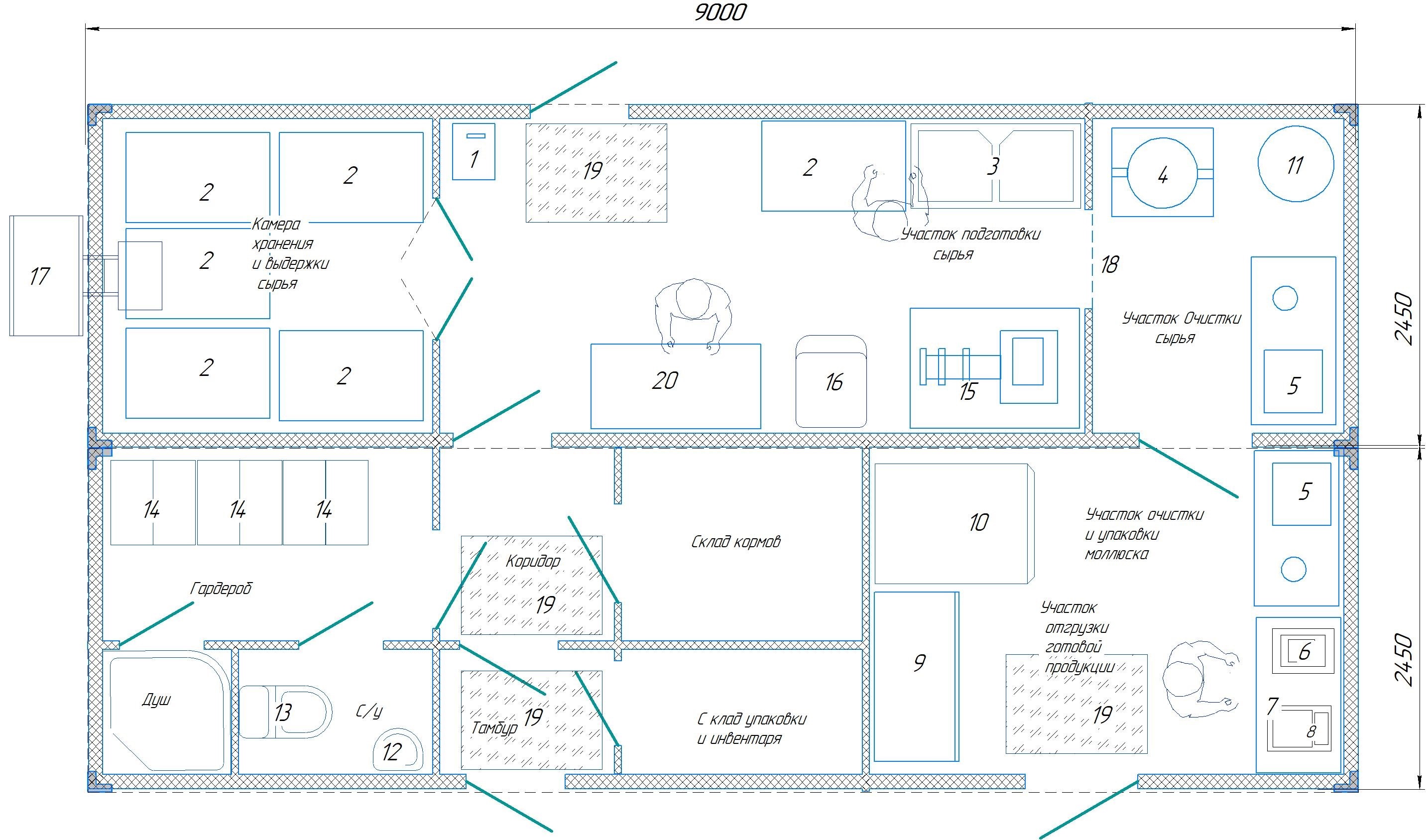 Рыбный цех РЦ -100.4 (100 кг моллюсков в смену, без общей кровли, моллюски очищенные, корм гранулированный)