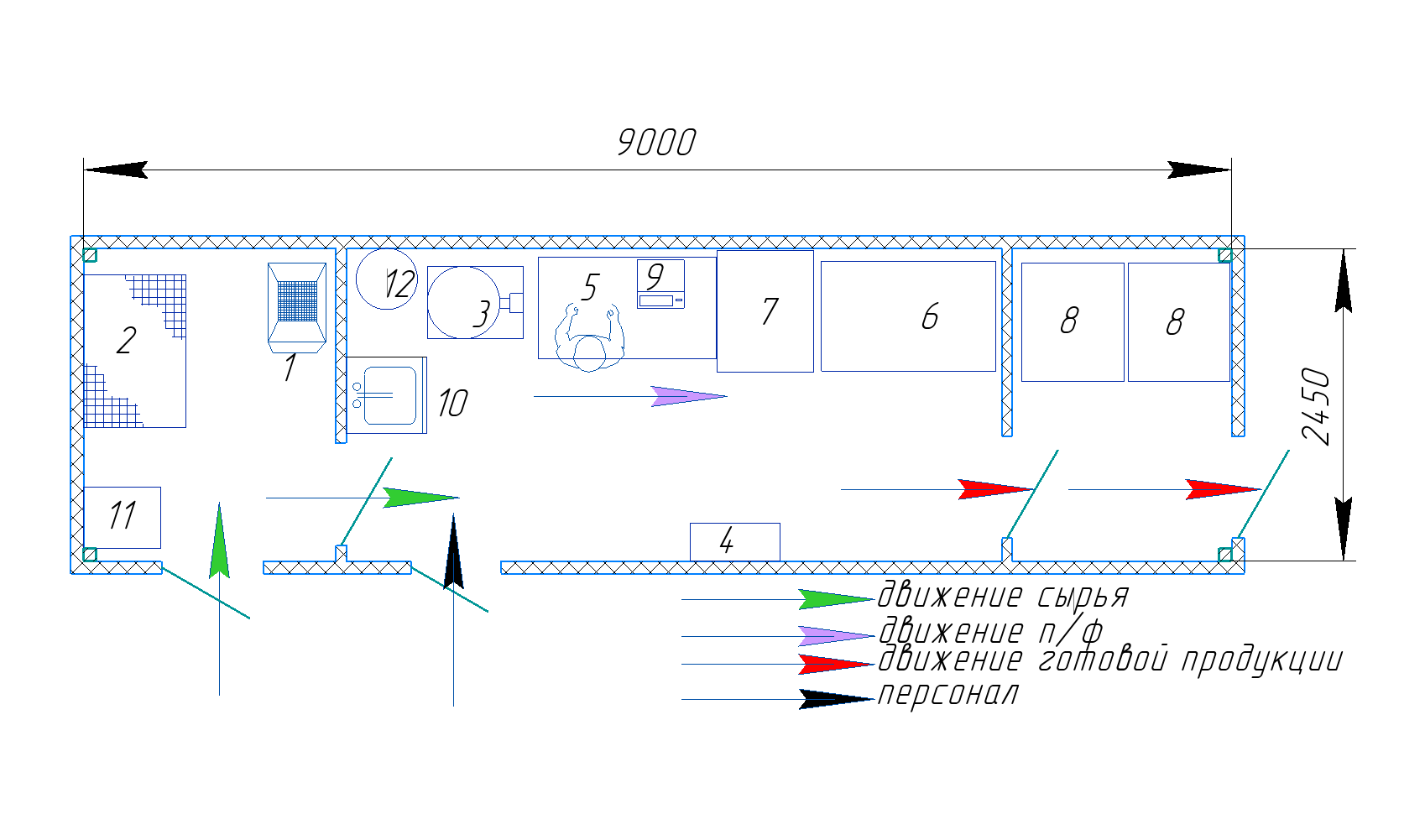 представляет собой здание на основе металлокаркаса, с использованием сэндвич панелей в качестве ограждающих конструкций. Пекарня укомплектована всем необходимым
