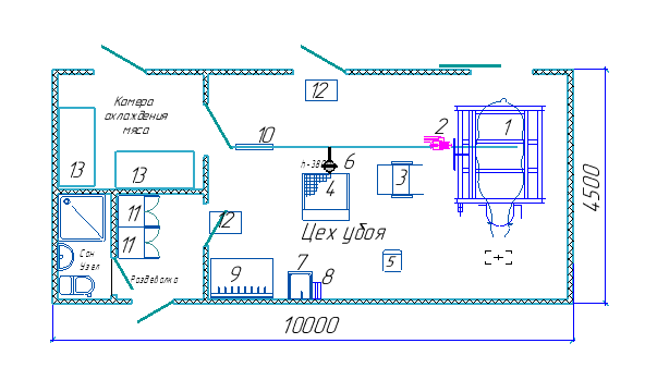 Убойный цех УЦ 2.11 (2 КРС, халяль, бытовые, холодильник, бюджетный)