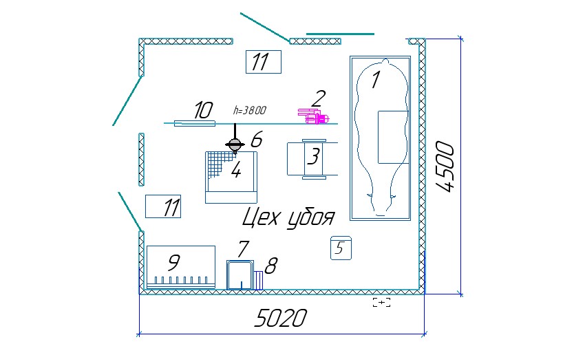 Убойный цех УЦ-2.3 (2 КРС, без холодильной камеры, без бытовых)