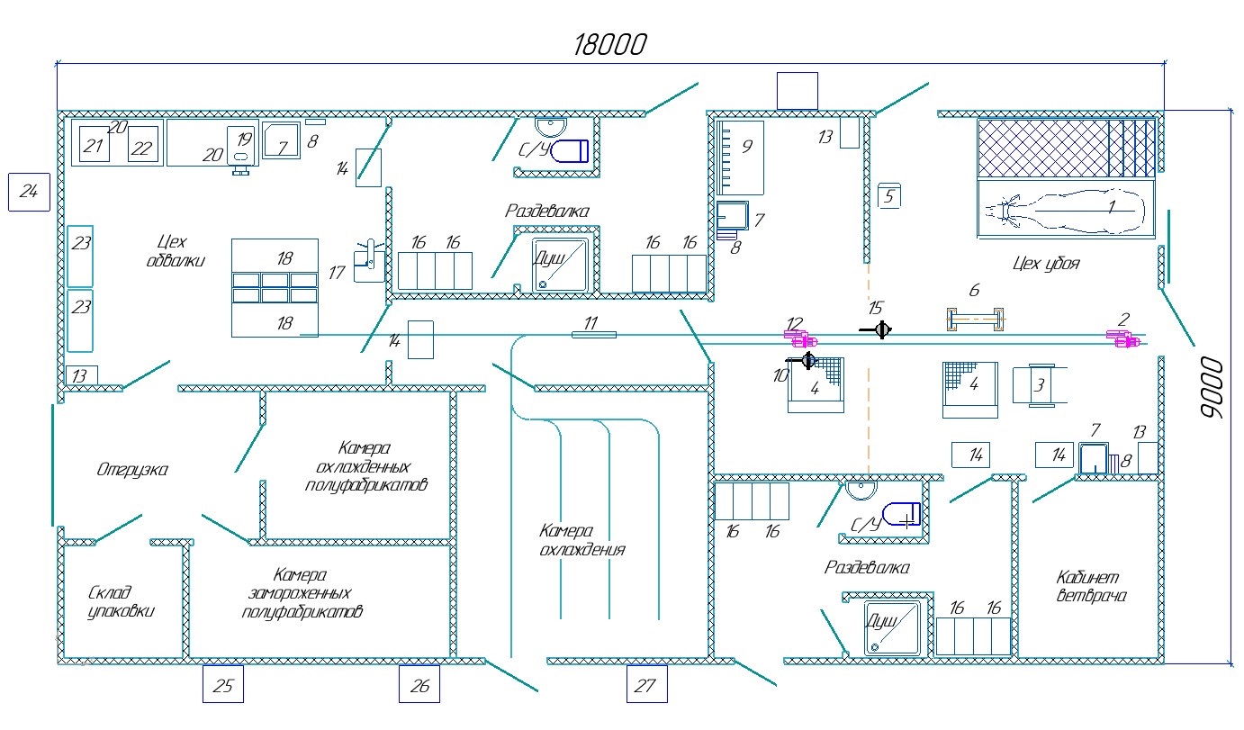 Убойный цех УЦ-5.1 (5 КРС, 2 ПОП, бытовые, кабинет, загон предубойного содержания)