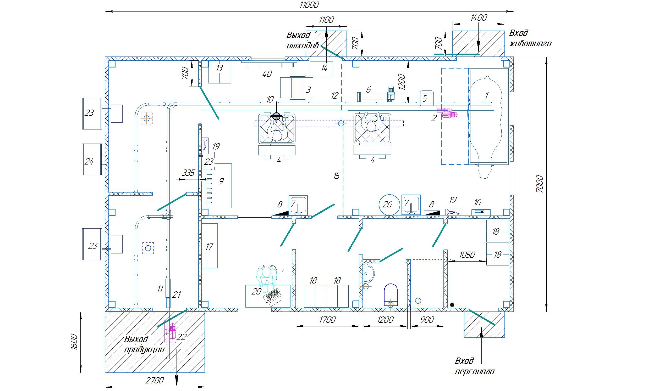 Убойный цех УЦ-5/30.1 (5 КРС или 30 МРС, 2 камеры, 2 ПОП, бытовые, кабинет)
