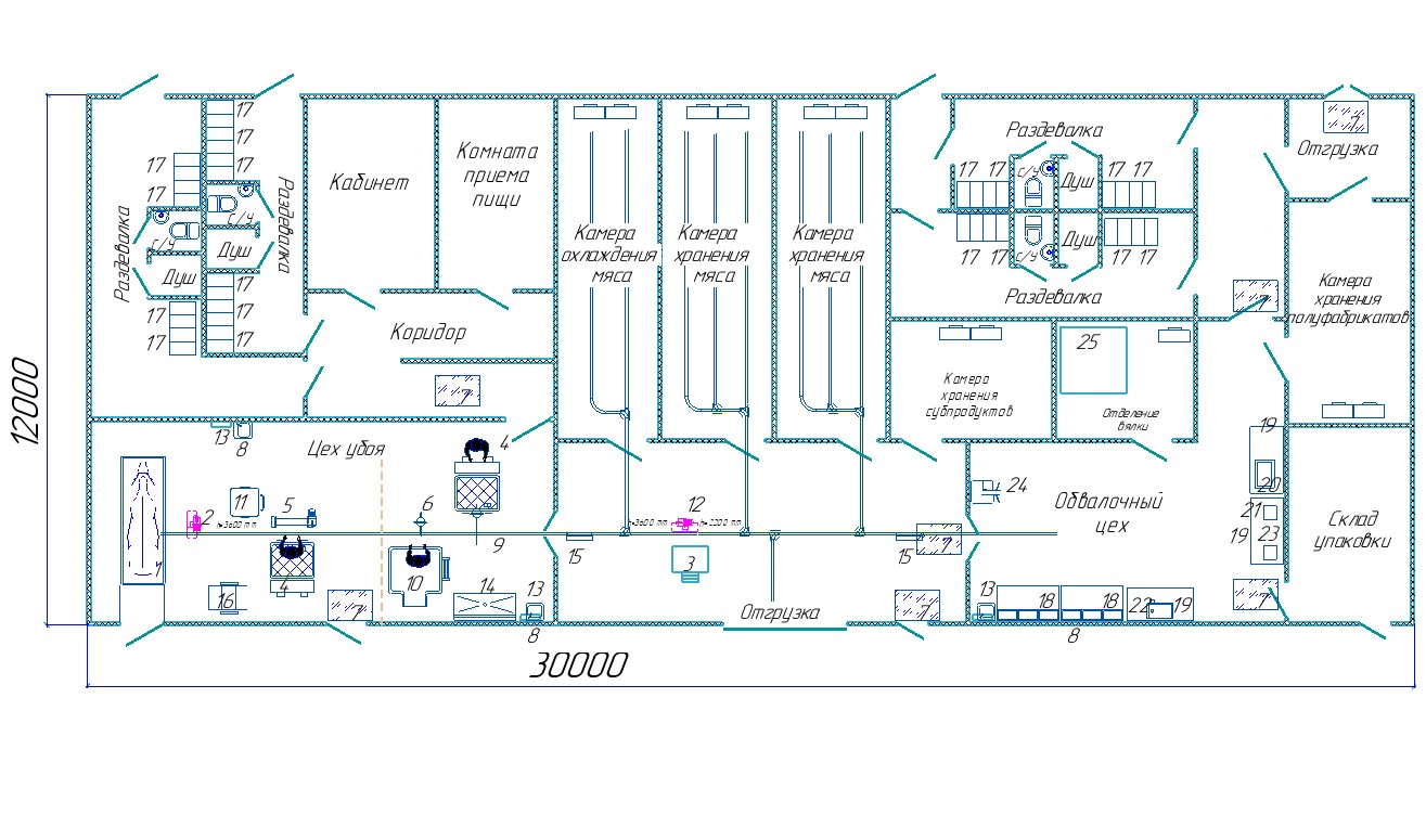 Убойный цех УМЦ-20.2 (20 КРС, камеры охлаждения, бытовые, без помещения обработки субпродуктов, полуфабрикаты)