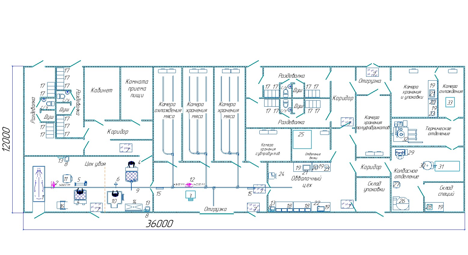Убойный цех УМЦ-20.2 (20 КРС, камеры охлаждения, заморозки, без помещения субпродуктов, полуфабрикаты, колбаса)