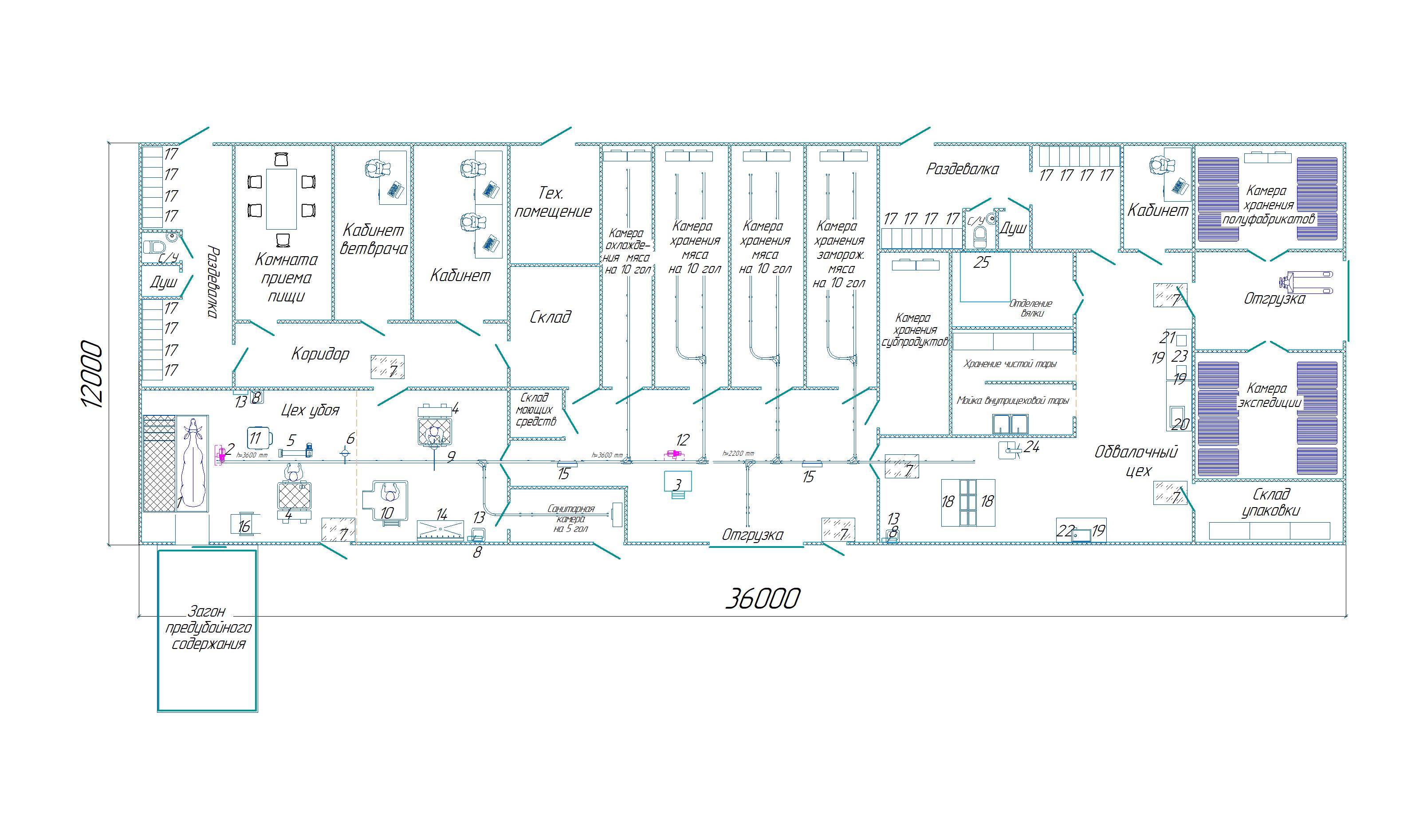 Убойный цех УМЦ-20.3 (20 КРС, камеры охлаждения, заморозки, бытовые, без помещения обработки субпродуктов, полуфабрикаты)