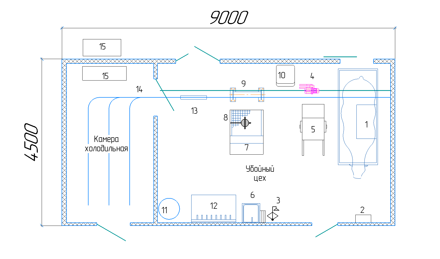 Убойный цех УЦ-10.1 (10 КРС либо 10 лошадей, камера хранения, без бытовых)