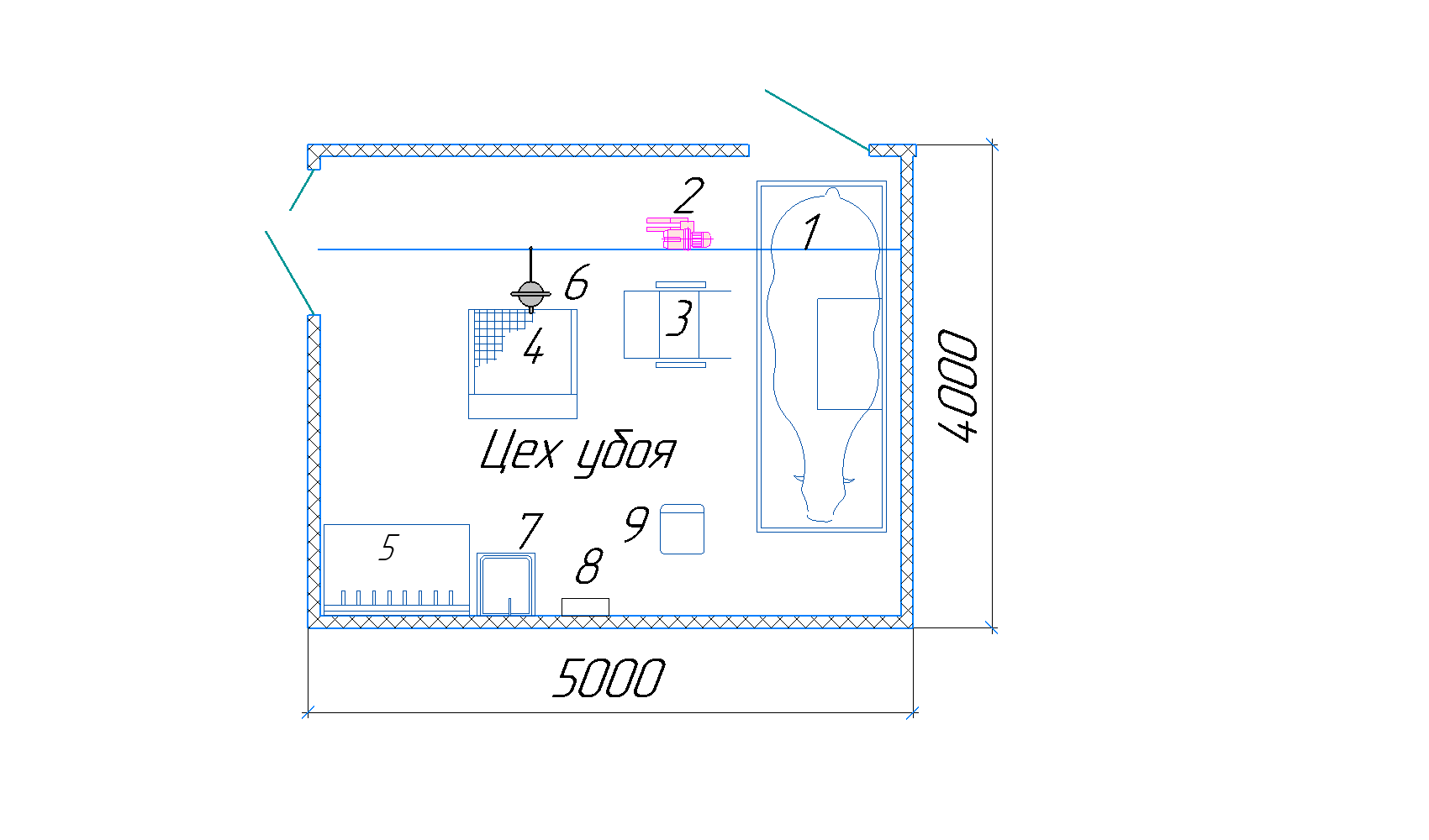 Убойный цех УЦ-2.5 (2 КРС, без холодильной камеры, без бытовых, эконом.)