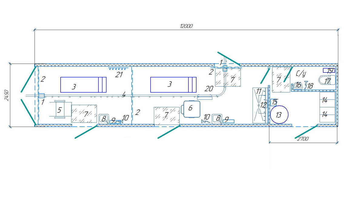 Убойный цех УЦ-100.3 (Мобильная бойня, 100 МРС, без холодильника, отдельностоящий контейнер, без крематора и бензогенератора)