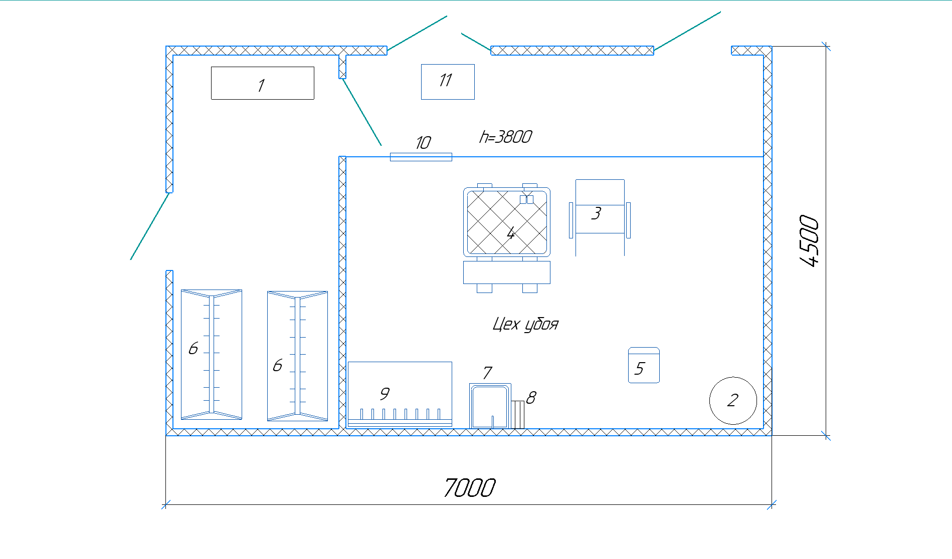Убойный цех УЦ-2.5 (2 КРС, ТЕСТ без бытовых, без тали, без бокса, с холодильной камерой)