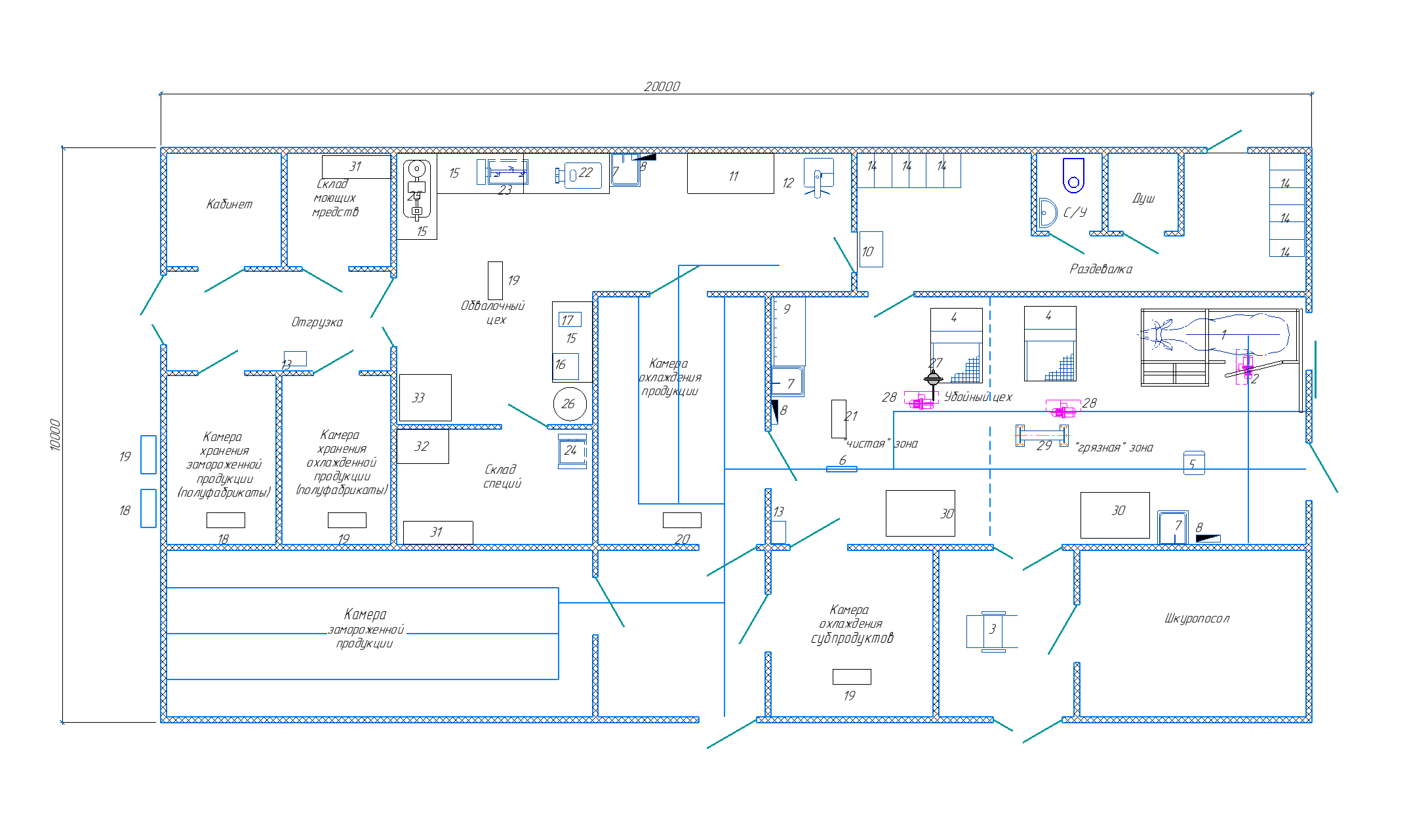 Убойный цех УМЦ-5/100.4 (5 КРС, 100 мрс либо сайгаков, 2 ПОП, полуфабрикаты, обвалка, пф в тесте, склады, камера субпродуктов)