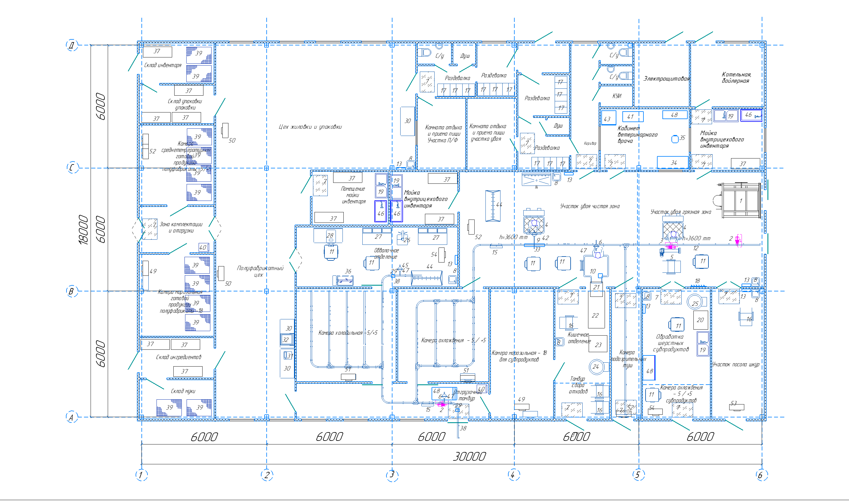 Убойный цех УМЦ-10.5 (убой 10 КРС, халяль, холодильники, переработка слизистых и шерстных, обвалка)