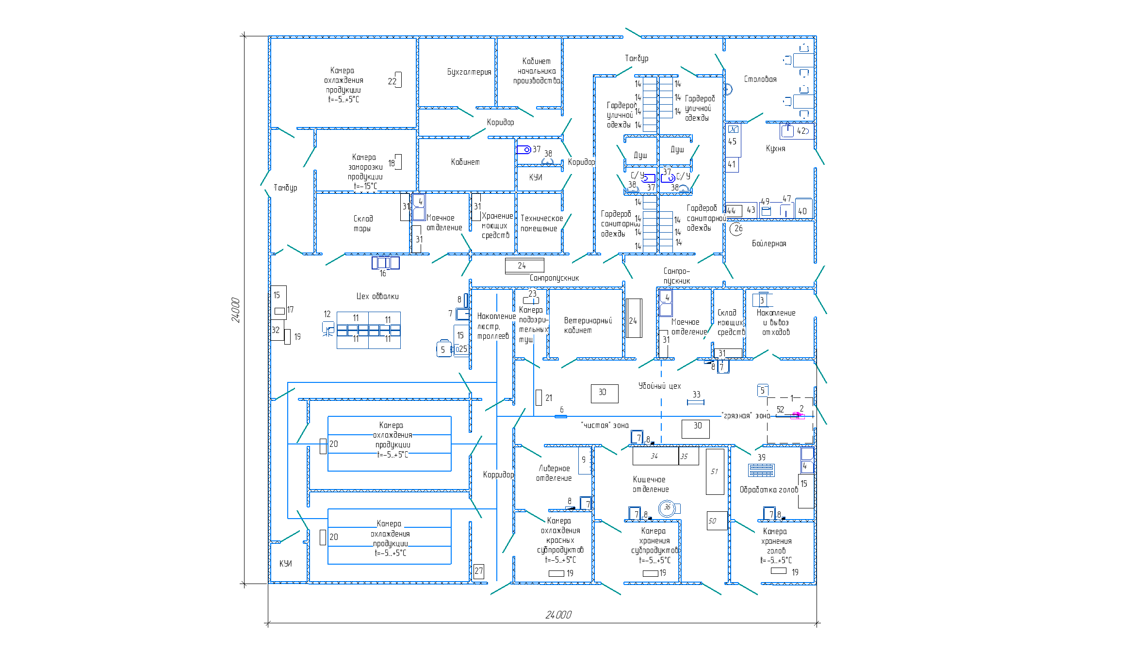Убойный цех УМЦ-5/100.8 (100 мрс, полуфабрикаты, камеры охлаждения, АБК, обвалка, склады, камера субпродуктов, головы, кишечка)