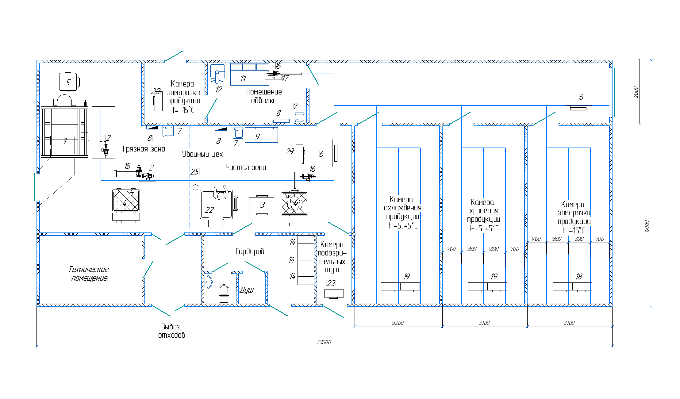 Убойный цех УМЦ-20.1 ТЕСТ (20 КРС, обвалка, 3 камеры, нарушение норм)